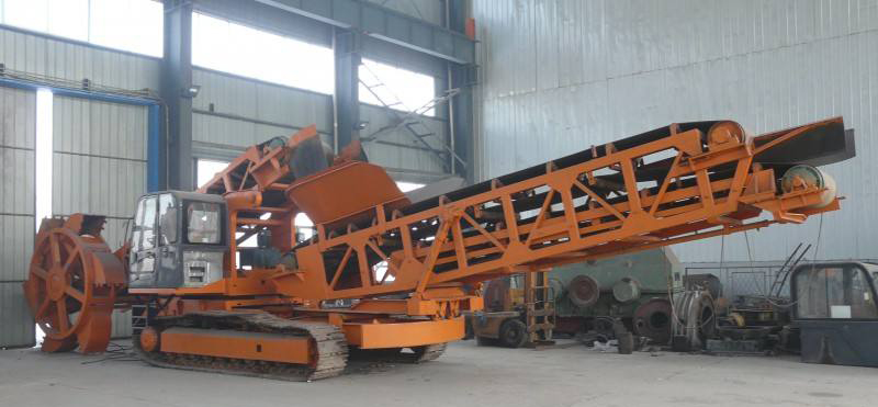 1.大型履帶移動堆取料機(jī)可用于礦山碎石料、沙土以及糧食等裝車操作,采用自身發(fā)動機(jī)帶動的液壓螺旋系統(tǒng)進(jìn)料,利用大小皮帶將料裝車,大小皮帶的伸縮旋轉(zhuǎn)也通過液壓系統(tǒng)控制,同時可控制履帶自行行走,無需外部電源,移動靈活,作業(yè)面積大、效率高;